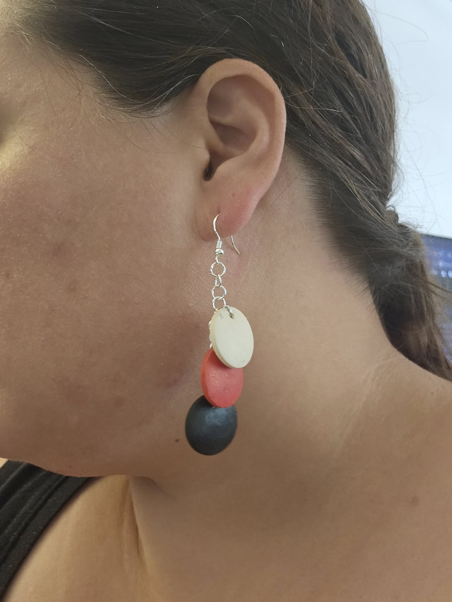 Bring a touch of earthy charm to your everyday look with these handmade Circle Dangle Earrings. Crafted from natural wood and hand painted in rich tones of red, blue, or gray, each pair carries the warmth and soul of artisan work.